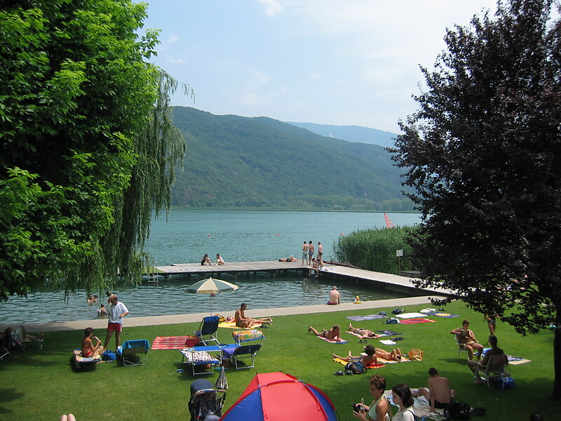 Beside the public open air swimming pool, Gretl am See offers its guests also a large lawn as well as a direct access to the Lake Kaltern. At the pier, visitors have the chance to rent sail boats, paddle boats (limited number) and surfboards. Gretl am See also features a surf-school, a surf shop, a kiosk and a grocery store.