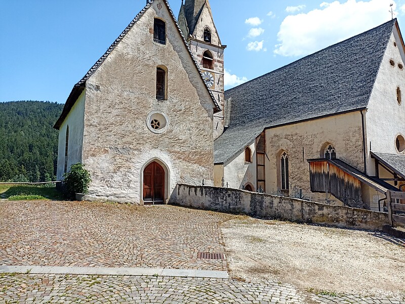 The Romanesque St. Anna church, the cemetery church, is probably as old as the Pfarrkirche. On its wooden altar it accommodates a very precious sculpture: the Pieta cast out of stone (1440)