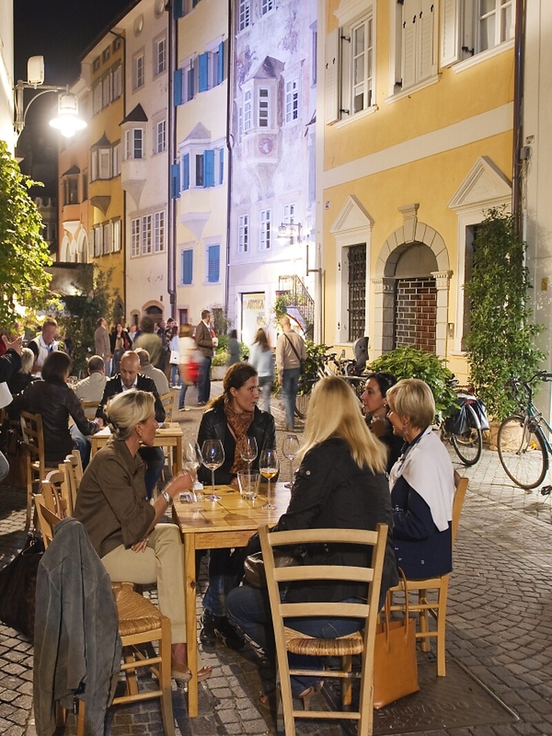 This street carries the Name of the Poet, lawyer and Mayor of Bolzano/Bozen during the second half of the 19th century. The street overlaps the old northern moat of the first medieval centre and the buildings on ist southern part correspond the the northern facade of the arcades. Especially during summer, the beginning of the street becomes a suggestive Corner of Bolzano: criss-cross from an original oper-bar on the fish Banks to shop, decorations and Restaurants, which create a Special and unique atmosphere. Numerous arches look down on the street, which contribute to the medieval hue. Number 25 corresponds to the entrance to the ancient Town Hall.